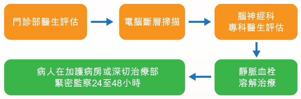 当怀疑中风病人抵达本院24小时门诊部时,门诊部驻院医生会优先为该病人诊症。