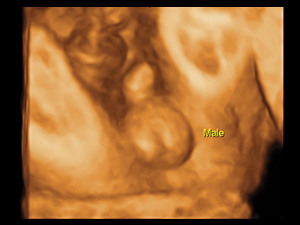 懷孕二十八週男性胎兒性器官的三維圖像