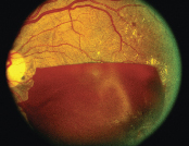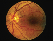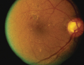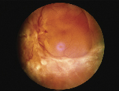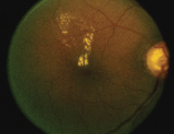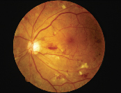 ![]() 視網膜出血、棉絮狀白點及滲出物 |