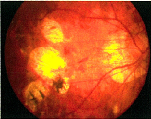 老年性(圖4)及深近視性(圖5)黃斑點退化的脈絡膜新生血管膜之治療