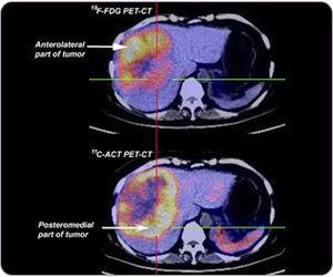 In the same HCC, C-11 ACT and F-18 FDG can be taken up by different parts of the same tumor due to different cellular differentiation